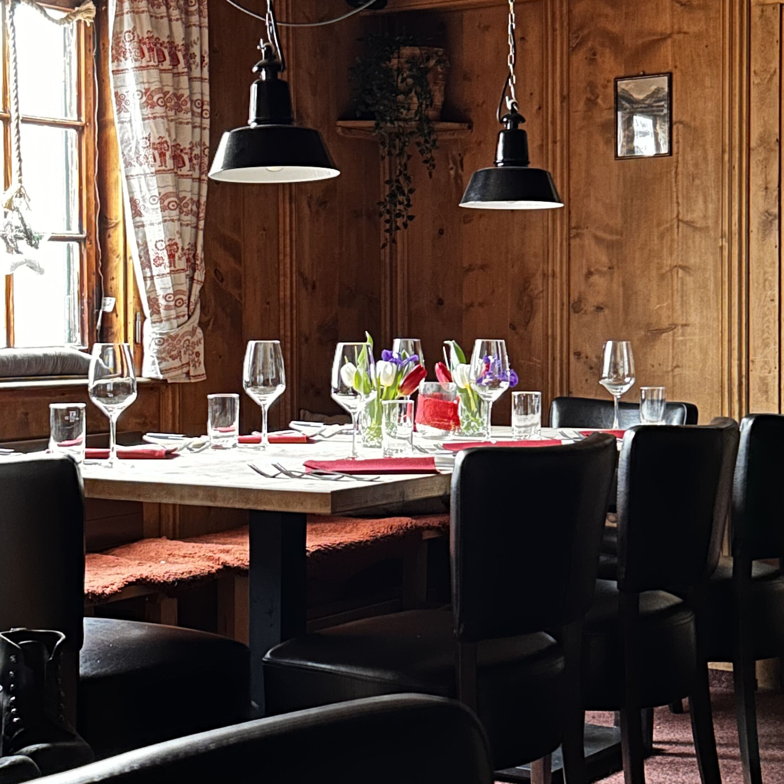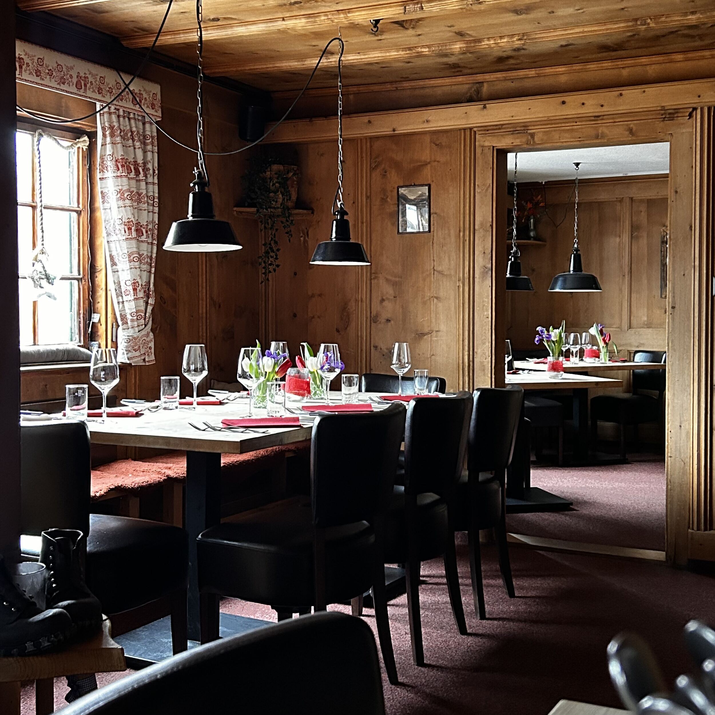"Ehrliche, geradlinige und regionale Küche gepaart mit freundlichem und herzlichen Service ohne Schnörkel, ohne Chichi, ohne Etikette und ohne Punkte oder Sterne. Denn bi ünsch gehts um die Sonne und nicht um die Sterne ;-) Geniesst ein feines Abendessen in urig rustikalem Ambiente ind 3 verschiedenen Stübli auf 2 Etagen. Bi ünsch werden Gäste zu Freunden und SIE sind bi ünsch ganz einfach DU! Auf bald in der Sonne...wir freuen uns auf EUCH!" Eure Gastgeber, Anja & Jörg